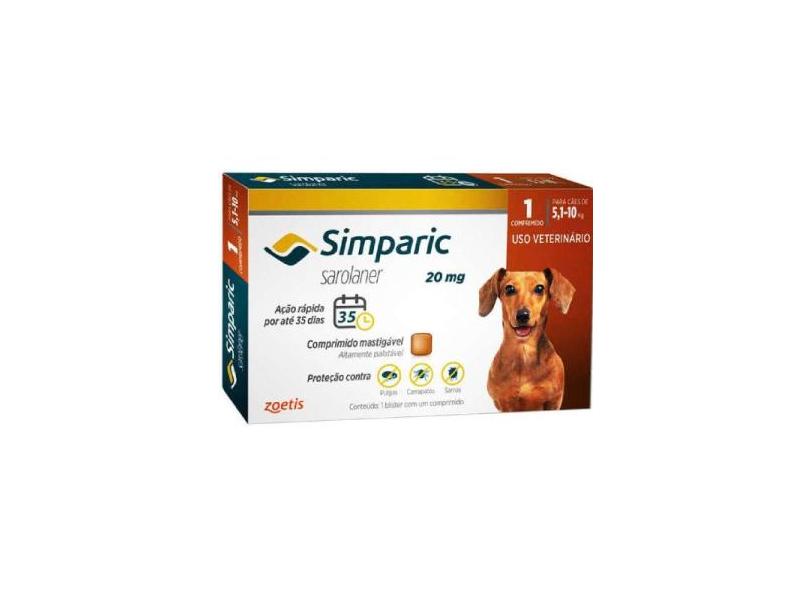 Antipulgas Simparic 5,1 a 10 kg 20 mg - Caixa 3 comprimidos - Zoetis