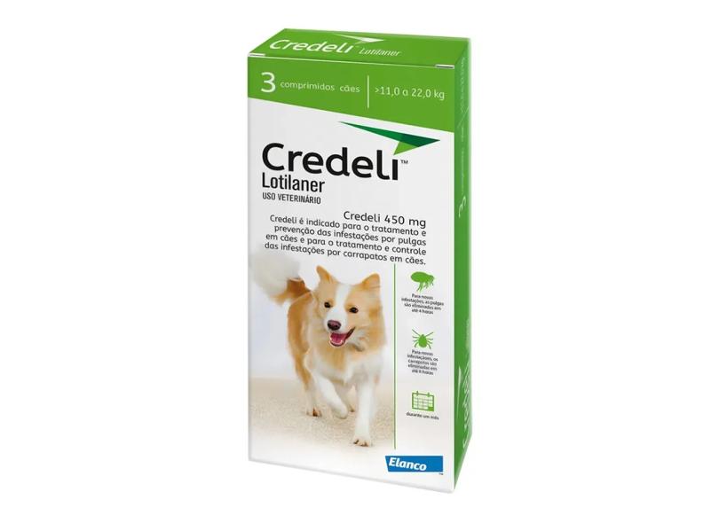 Credeli 450mg Antipulgas e Carrapatos para Cães de 11,0 a 22,0kg com 3 Comprimidos Mastigáveis