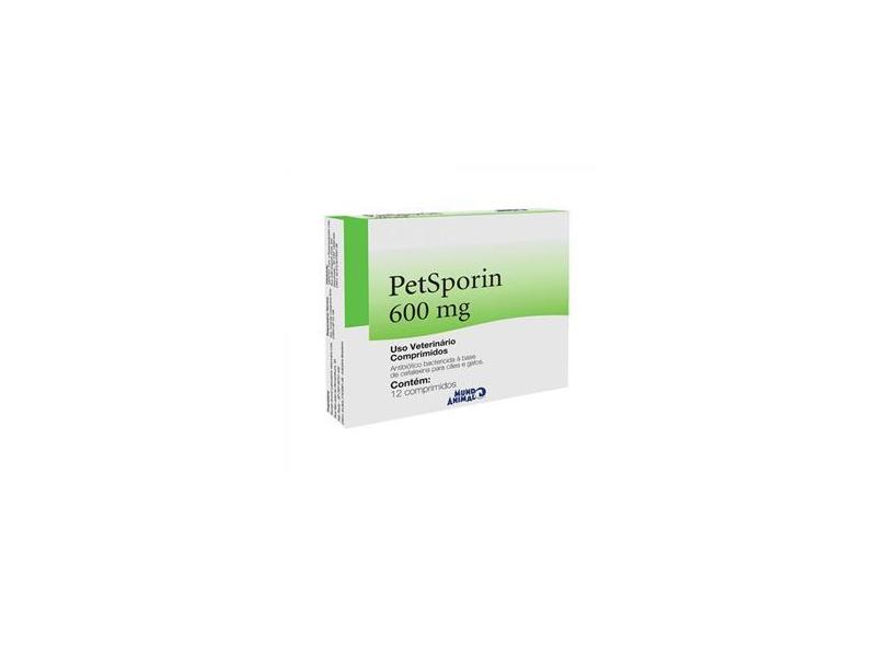 Petsporin 600mg Antibiótico Cães e Gatos c/ 12 comp. - Mundo Animal