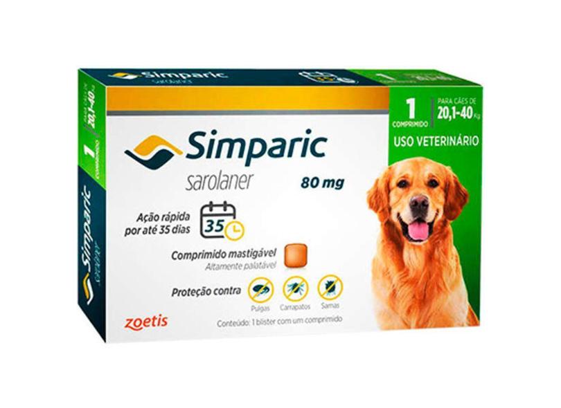 SIMPARIC 80MG CÃES 20,1 A 40 KG CAIXA C/ 3 Comprimidos