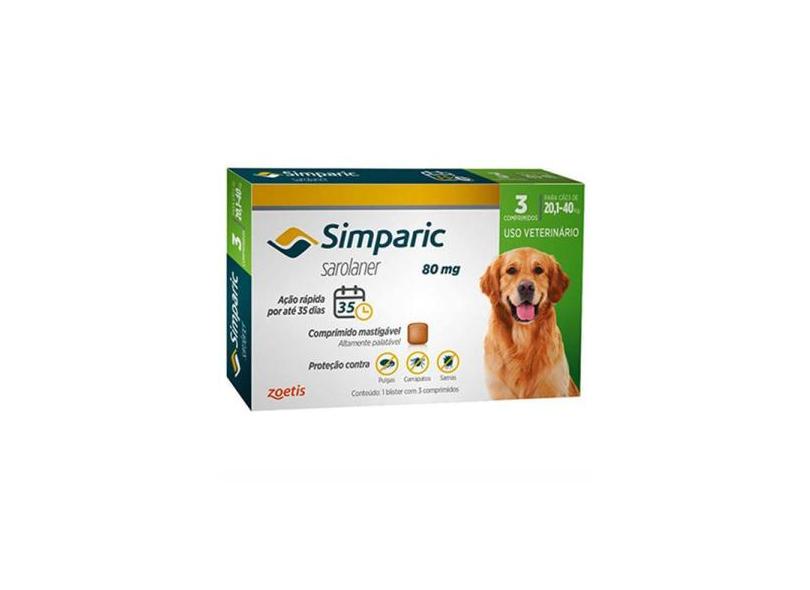 Simparic Antipulgas E Carrapatos Cães 20,1 A 40kg C/3 Comprimidos