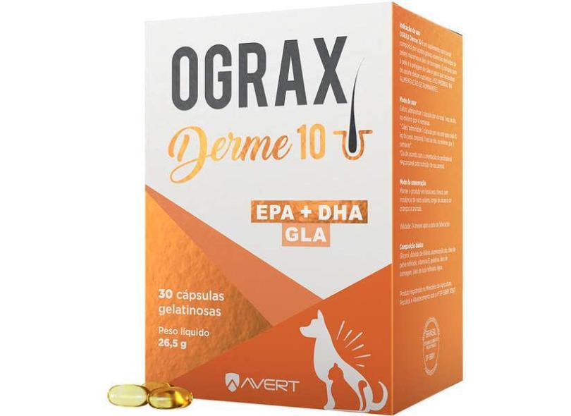 Suplemento Alimentar Avert Ograx Derme 10 Cães e Gatos - Cães e Gatos até 10 Kg