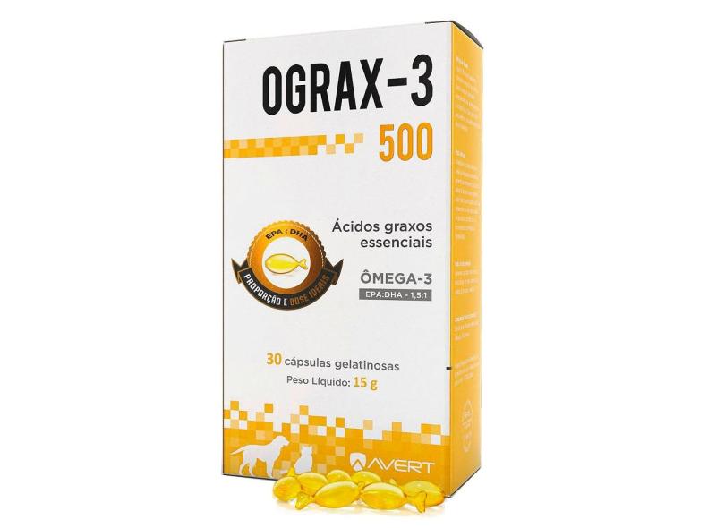 Suplemento Avert Ograx-3 500 Mg Para Cães E Gatos - 30 Cápsulas