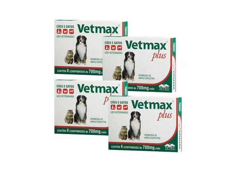 Vetmax Plus 700Mg Vetnil 4 Comp. Cães E Gatos Kit Com 4