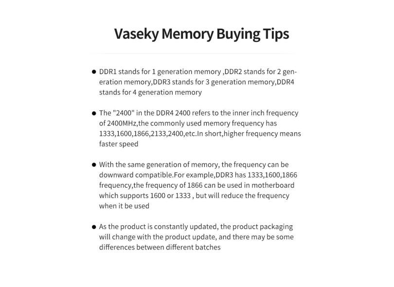 Vaseky 4G de memória DDR3 1333 4G Memória Desktop alta velocidade de leitura / gravação Noiseless Memória Desktop DDR3 1333MHz