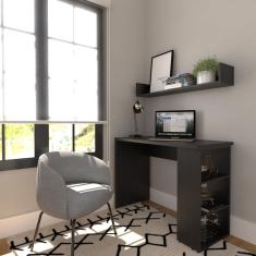 Conjunto de Mesa com Prateleiras Para Escritório ou Home Office 90 cm de Largura Preto