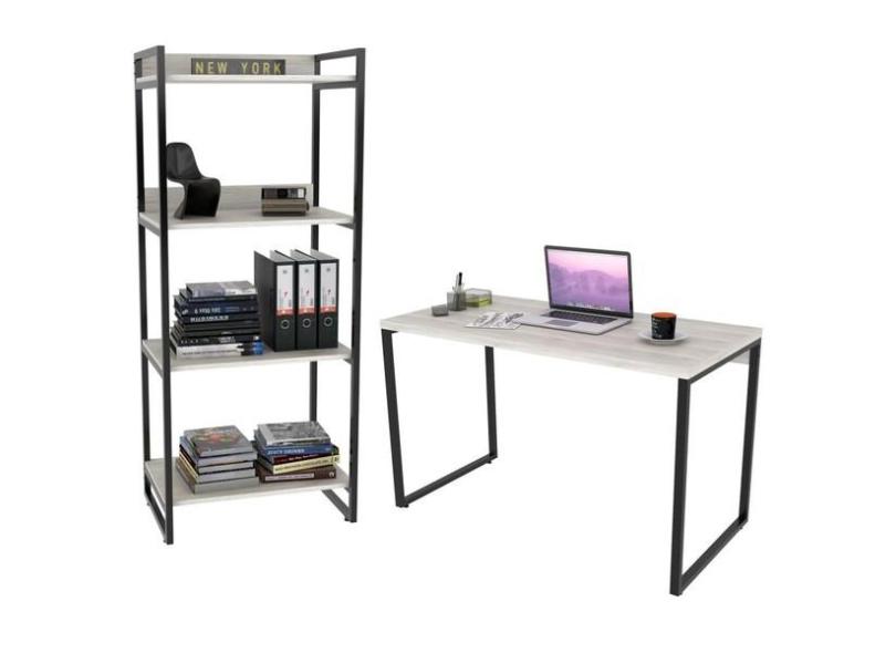 Conjunto Escrit rio Estilo Industrial Mesa 120cm E Estante 60
