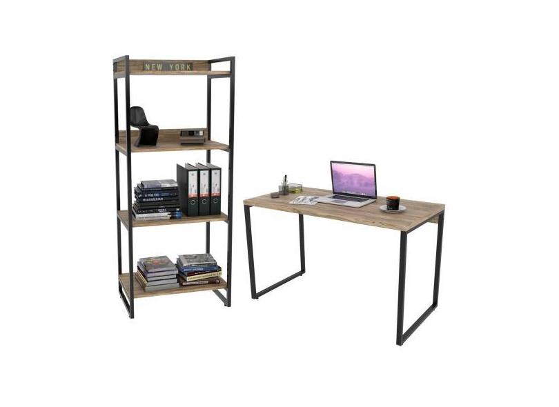 Conjunto Escritório Estilo Industrial Mesa 120cm E Estante 60cm 4 Prat
