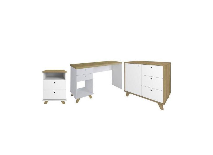 Conjunto Escritório Home Office 3 Peças Elai A06 Olmo-branco - Mpozena