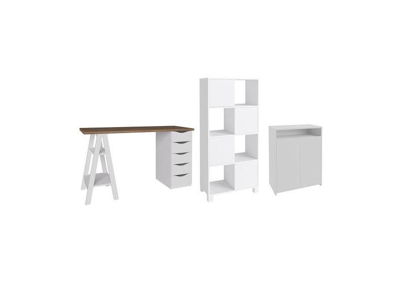 Conjunto Escritório Home Office 3 Peças Maly A06 Nogal/Branco - Mpozen