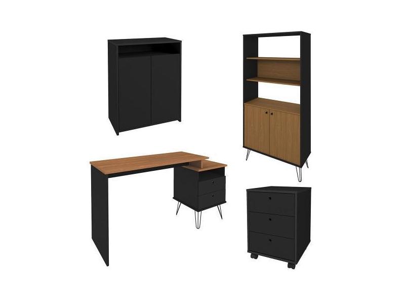 Conjunto Escritório Home Office 4 Peças Lux Industrial A06 Freijó/Pret
