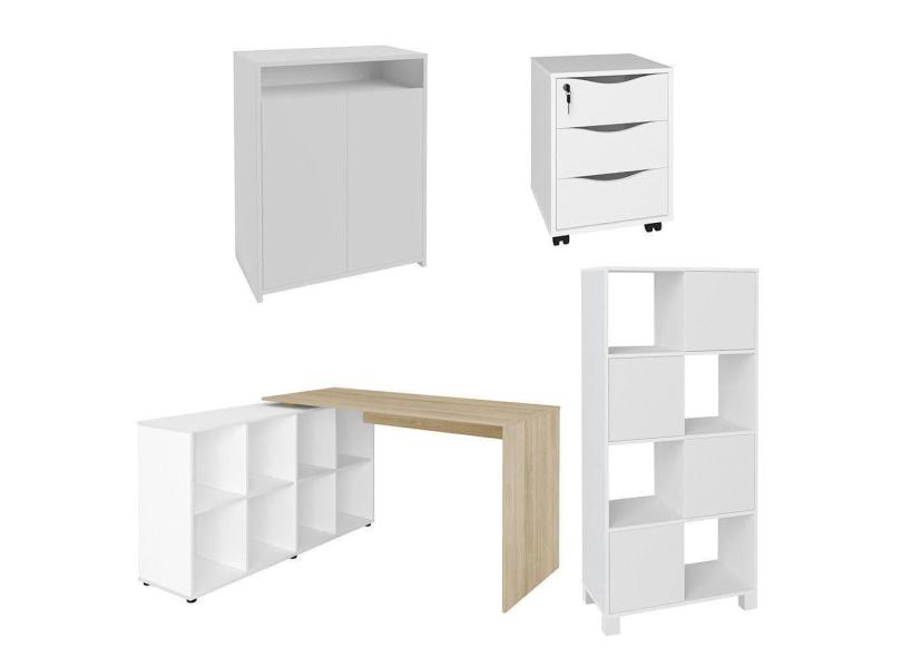 Conjunto Escritório Home Office 4 Peças Side A06 Branco-carvalho-branco - Mpozenato