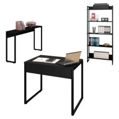 Conjunto Escritório Mesa 90 Aparador e Estante Studio Industrial - Mpozenato