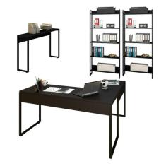 Conjunto Escritório Mesa Em L Aparador E 2 Estantes Studio Industrial
