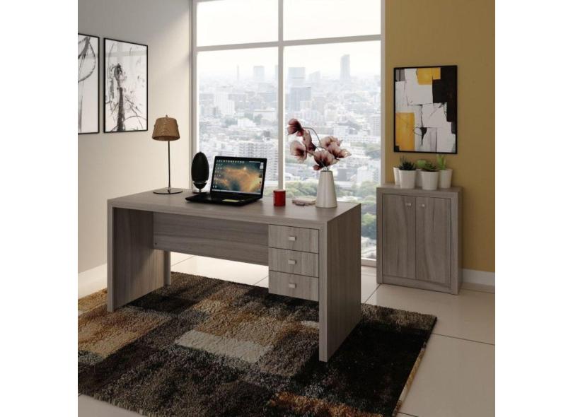 Conjunto Home Office 2 Peças Escrivaninha 3 Gavetas e Balcão 2 Portas Espresso Móveis Carvalho