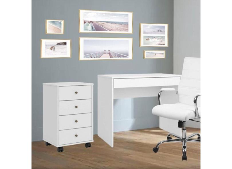 Conjunto Home Office 2 Peças Escrivaninha Facility e Gaveteiro Presence Demóbile Branco