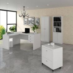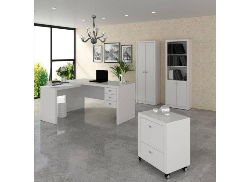 Conjunto Home Office 4 Peças 1 Escrivaninha em L 1 Gaveteiro 1 Armário 1 Estante Espresso Móveis Branco
