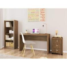 Conjunto Home Office com Mesa, Armário Baixo com Nicho e Gaveteiro  3 Gavetas Espresso Móveis