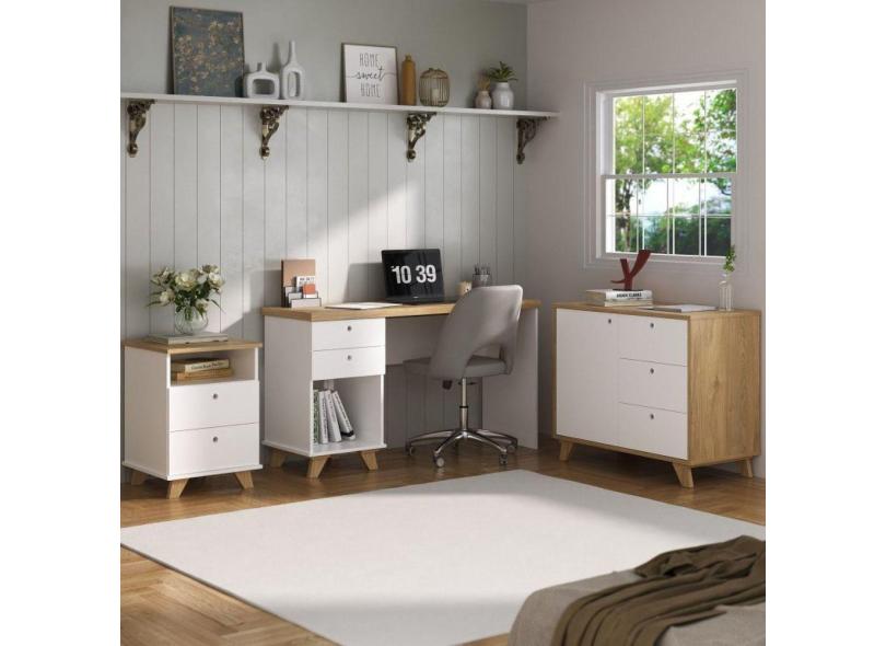 Conjunto Home Office Completo 3 Peças Escrivaninha Sky Balcão Lugano e Gaveteiro Day Artany Olmo/Branco