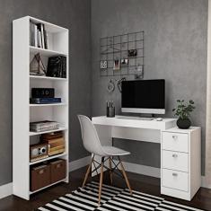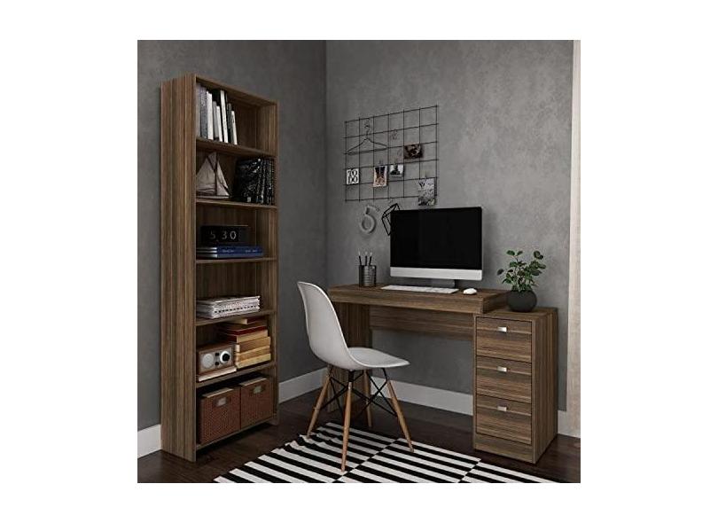 Conjunto Home Office Escrivaninha 3 Gavetas Estante Livreiro 5 Prateleiras DJD Móveis