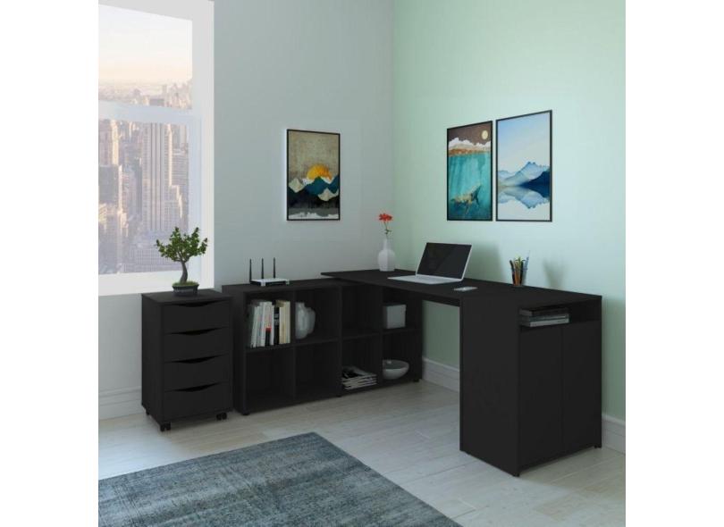 Conjunto Home Office Escrivaninha, Balcão 2 Portas e Gaveteiro 4 Gavetas Artany na Cor Preto Artany Preto