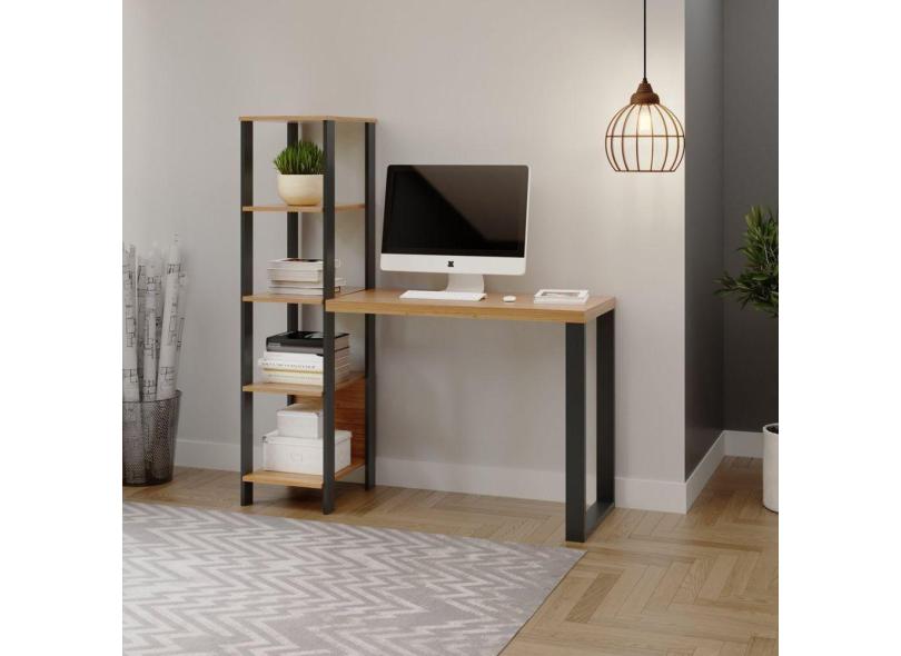 Escrivaninha 100% MDF 5 Prateleiras 122,5x44cm Industrial Pradel Móveis Freijó/Preto