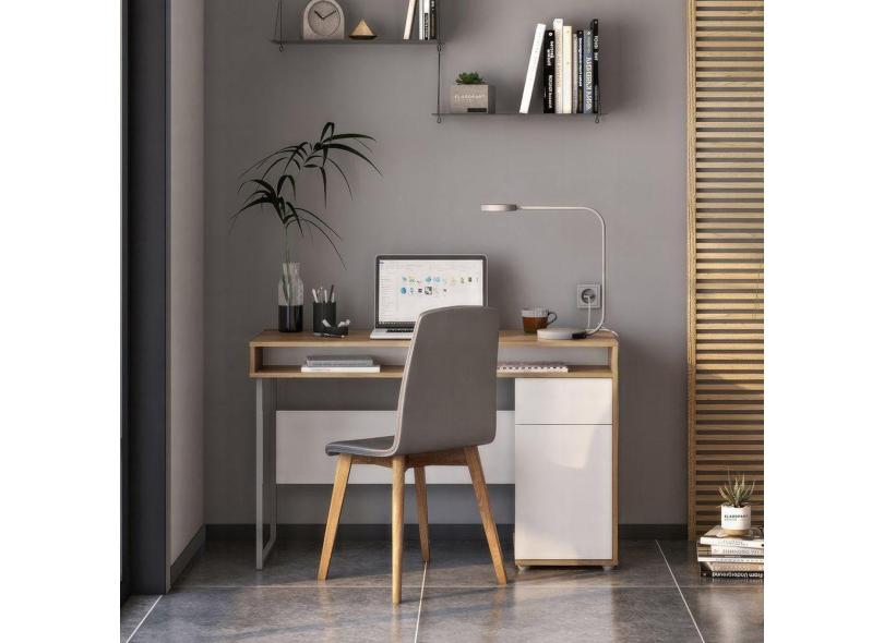 Escrivaninha 120cm 1 Porta 1 Gaveta Chicago Aveiro/Branco