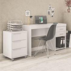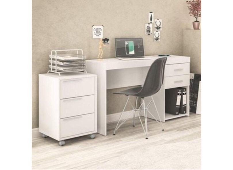 Escrivaninha 2 Gavetas 120cm com Gaveteiro 3 Gavetas Maia Branco