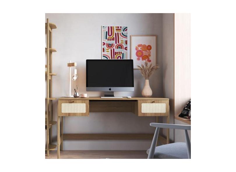 Escrivaninha 2 Gavetas 139cm Palhinha Pé Madeira 27931 Oslo Artesano,