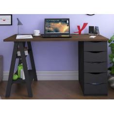 Escrivaninha 5 Gavetas 2 Prateleiras Spirit Artany Nogal/