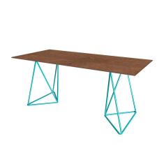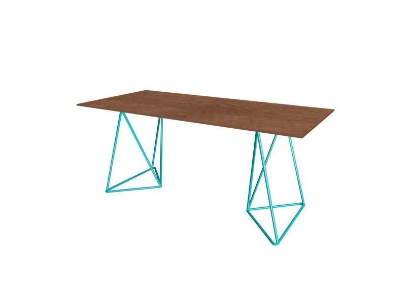 Escrivaninha Bela Vista Cavalete Tampo Imbuia Base Ferro Azul Turquesa - Cor: Marrom