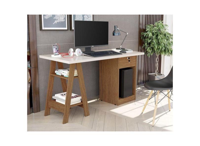 Escrivaninha Cavalete 02 Prateleiras Bali Off White e Canela
