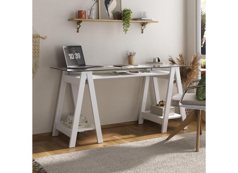 O menor preço encontrado no Brasil para Escrivaninha Cavalete 150 cm Tampo de Vidro 2 Prateleiras Artany Branco atualmente é R$ 738,09.