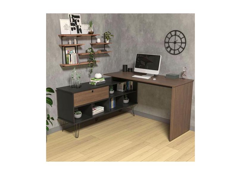 O menor preço encontrado no Brasil para Escrivaninha Com 1 Porta e 5 Nichos Artany Dubai Cor Ipê com Preto atualmente é R$ 689,00.