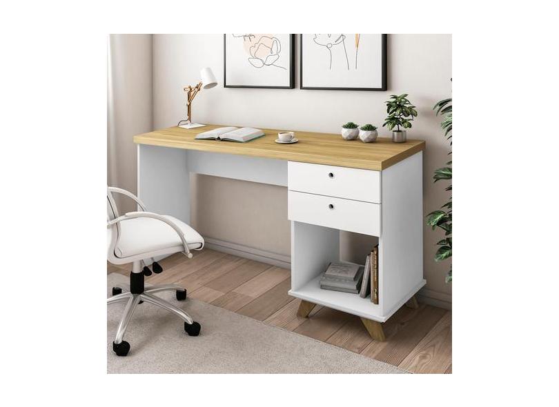 Escrivaninha Com 2 Gavetas e 1 Nicho Artany Sky Cor Olmo com Branco