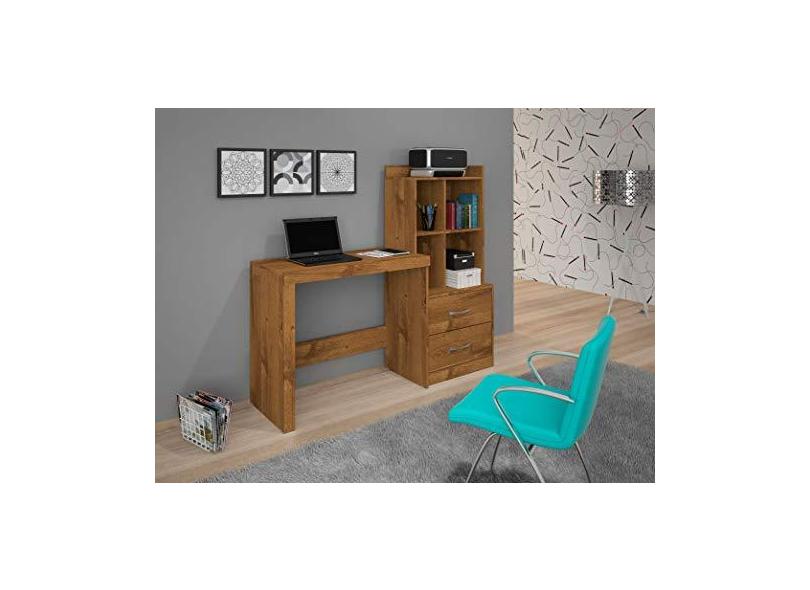Escrivaninha Com Estante 2 Gavetas 4 Nichos Alana (Nobre Soft)