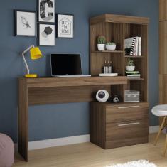 Escrivaninha Com Estante Office 2 Gavetas Nogal