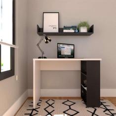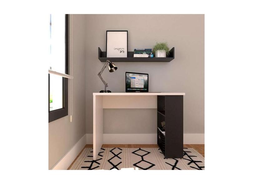Escrivaninha com Prateleira KitCubos Branca e Preta 100 cm - Bramov