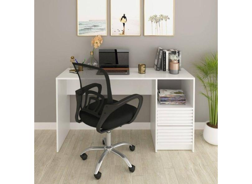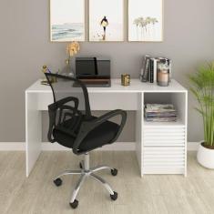 Escrivaninha com Ripado 2 Gavetas 1 Nicho com Cadeira para Escritório Diretor Tela Mesh Tok 3310 Branco