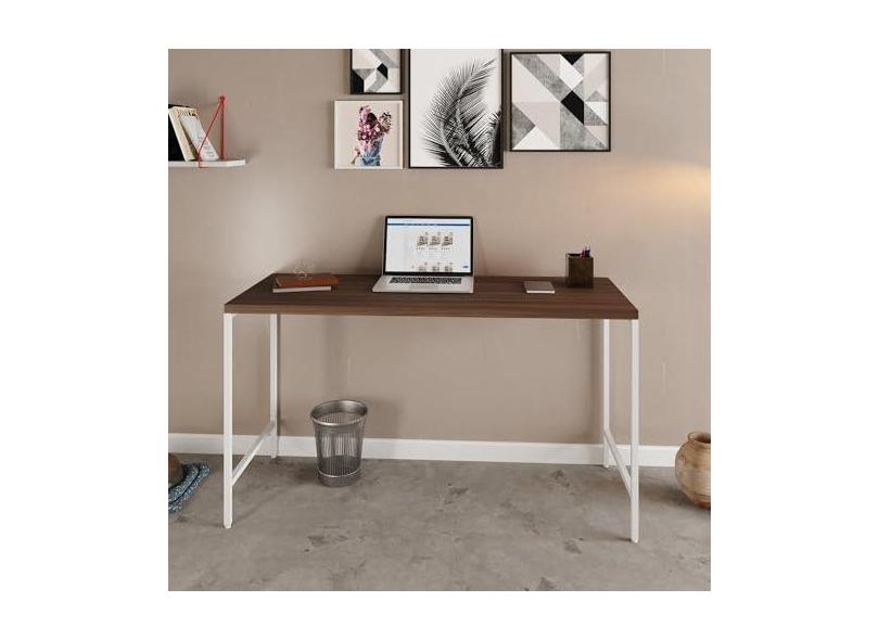 Escrivaninha Estilo Industrial 135cm Active Yescasa Nogal/Est.Branca