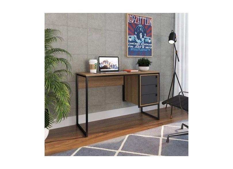 Escrivaninha Industrial 120cm 3 Gavetas Placa E Ponto