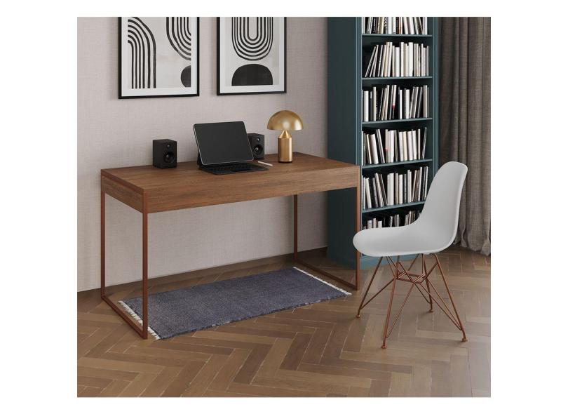 Escrivaninha Industrial Escritório Amêndoa 137X53Cm Malta Com 1 Cadeira Branca Base Cob Cor: Amendoa