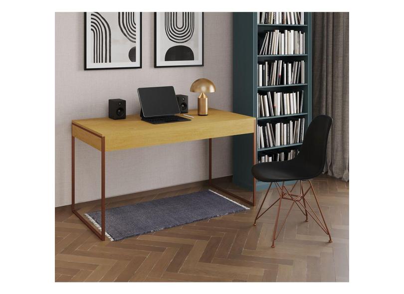 Escrivaninha Industrial Escritório Canela Malta Com 1 Cadeira Eames Eiffel Preta Base Cobre Marrom