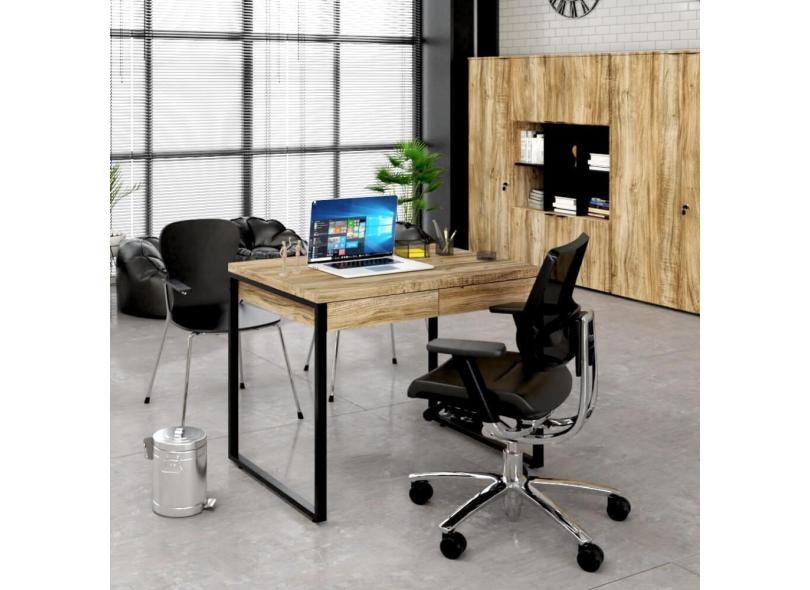 Escrivaninha Industrial Kuadra com 2 Gavetas 90 cm - Carvalho/Preto