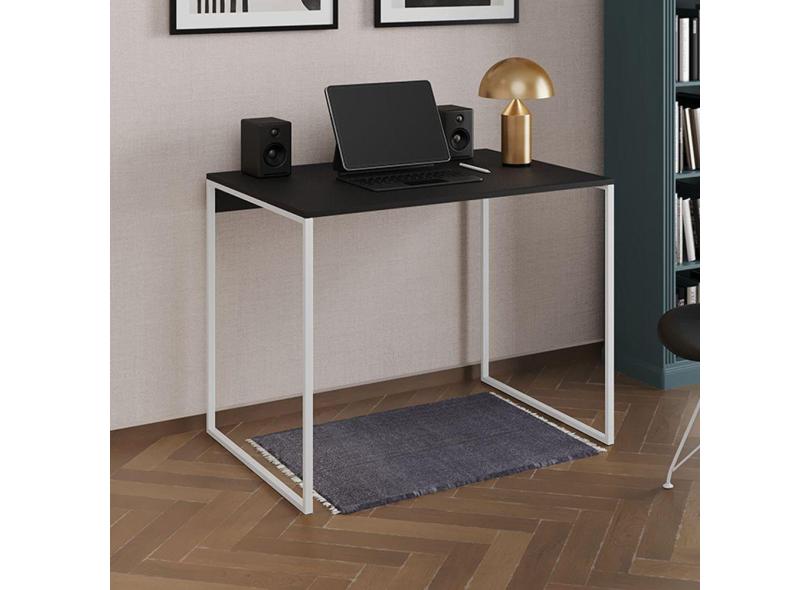 Escrivaninha Industrial Office Preta 90x53 Grécia Base Ferro Branco