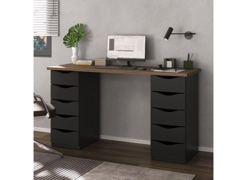 Escrivaninha Mesa Home Office 10 Gavetas Due Ii Nogal-preto
