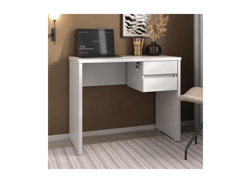 Escrivaninha Minimalista com 2 Gavetas com Chave Branco