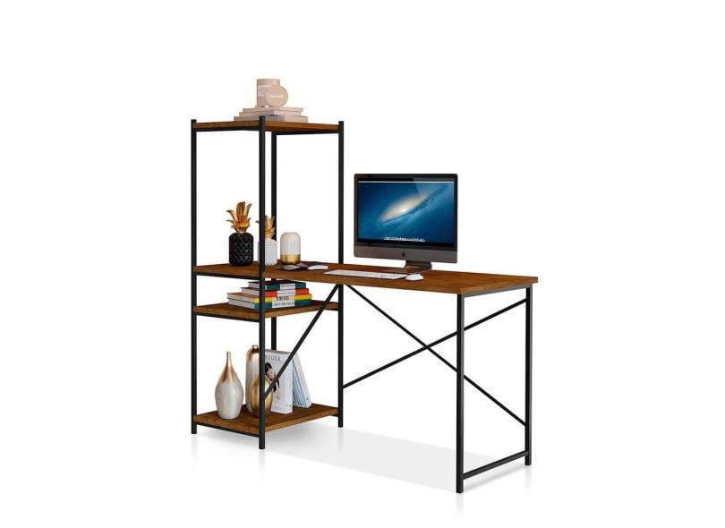 Escrivaninha Office Rubi em MDF Industrial com Prateleiras KLM Store