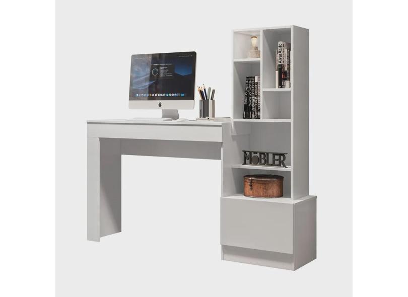 Escrivaninha Office Sara com Estante 149 cm Branco - D'Rossi