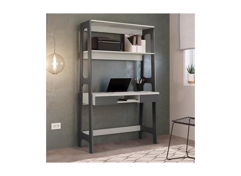 Escrivaninha para Escritório com Estante Primazzia Grafite/Off White